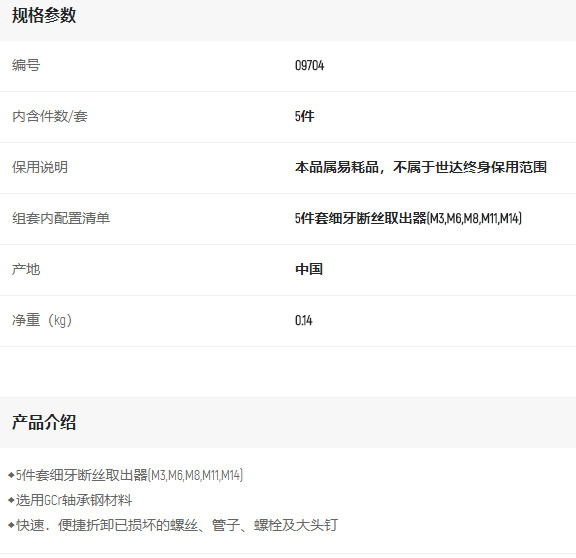 產(chǎn)品名字:世達(dá)5件套細(xì)牙斷絲取出器